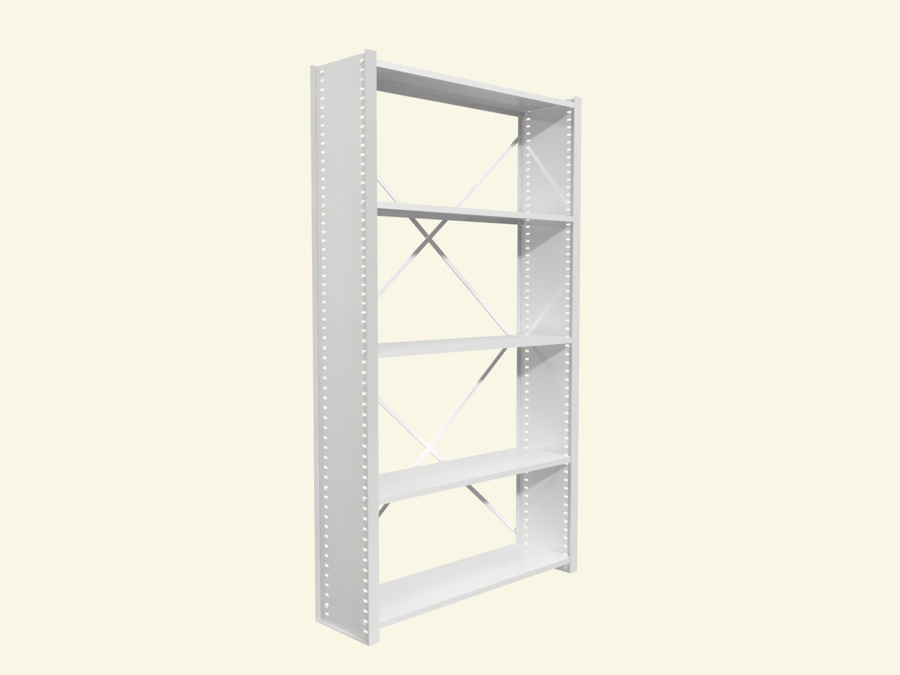 Боковые стойки стационарных стеллажей имеют перфорацию для крепления полок, что позволяет регулировать высоту установки в зависимости от потребностей хранения.
