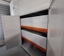 Конструкция предусматривает возможность установки не только стандартных полок, но и выдвижных ящиков (в т.ч. с разделителями), способных выдерживать нагрузки до 200 кг. Такая система хранения особенно эффективна при организации складирования деталей, комплектующих и других производственных материалов, требующих систематизации и быстрого доступа к ним.